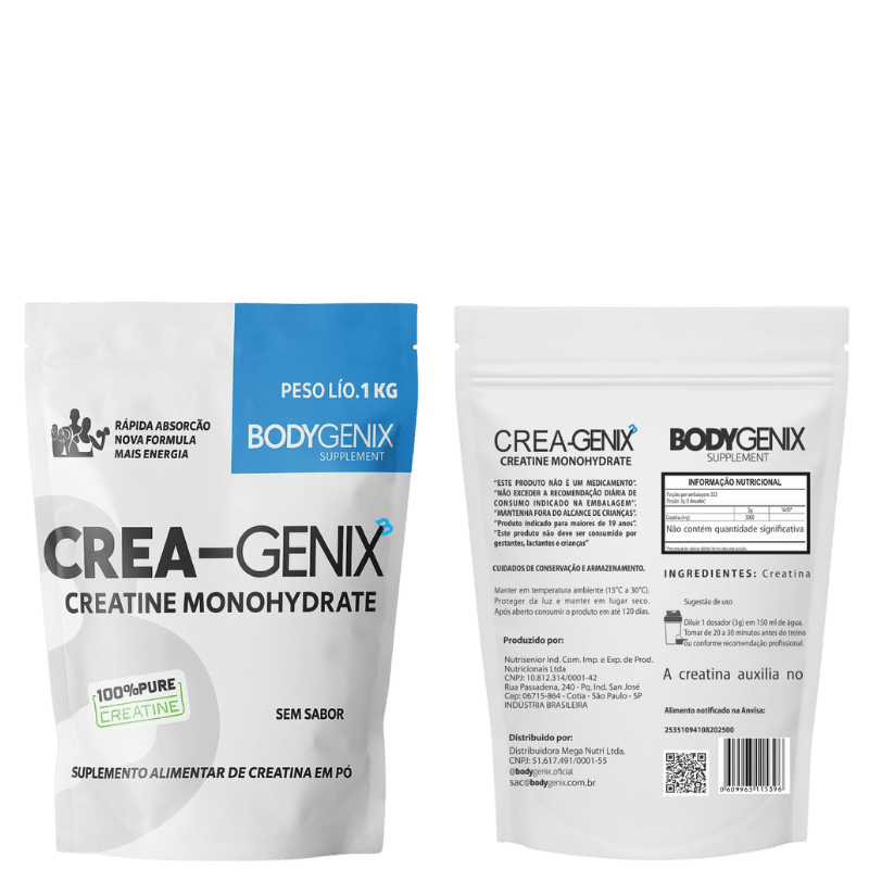 Crea-Genix Monohydrate – BodyGenix é a creatina 100% pura monohidratada, elaborada para maximizar a produção de energia e aperfeiçoar o desenvolvimento atlético. Este composto, naturalmente encontrado no corpo humano e armazenado principalmente nos músculos, cumpre uma função essencial durante as atividades físicas, como levantamento de peso, sprints e exercícios de alta demanda.